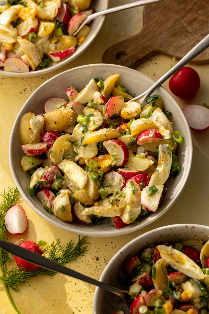 Na štvrtiny nakrájame aj umyté reďkovky, jarnú cibuľku najemno a kôpor nahrubo.