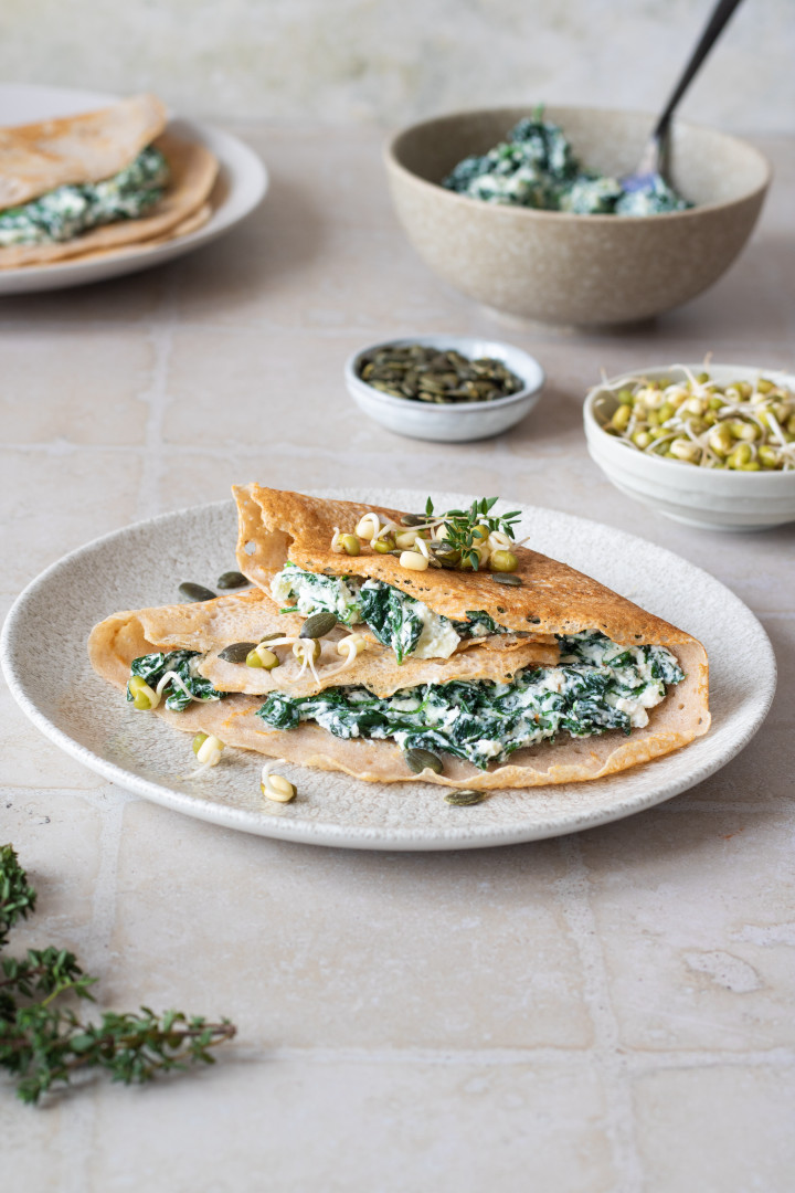 V tomto recepte ich dopĺňa ricotta – jemný taliansky syr s krémovou konzistenciou a veľmi jemnou chuťou, ktorý sa skvele hodí do rôznych náplní. Spolu so špenátom vytvorí príjemne ľahkú a krémovú náplň, ktorá sa k pohánkovým palacinkám výborne hodí. 💚