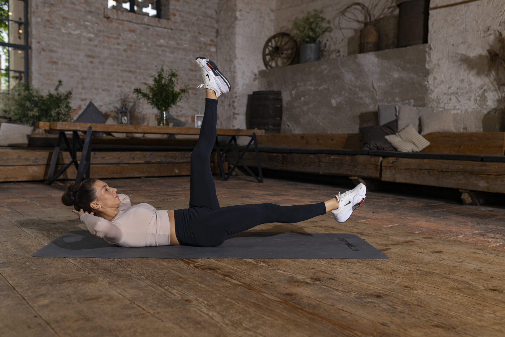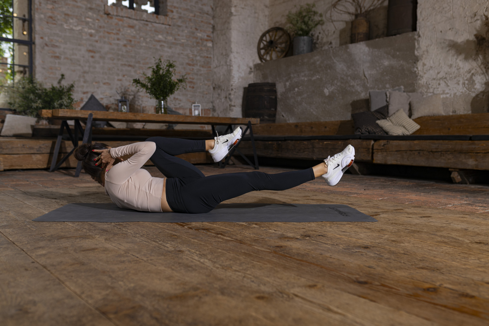 - Pokiaľ cítiš bolesť v krížoch, alebo cítiš , že tvoja chrbtica nie je na podložke, tak hlavu pokojne polož a pokračuj v cvičení